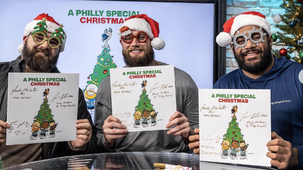 They might not be Elvis or Bing Crosby, but Eagles linemen Jason Kelce, Lane Johnson and Jordan Mailata have made an album of Christmas tunes. They also recruited A.J. Brown and Jalen Hurts to lend their vocal talents.