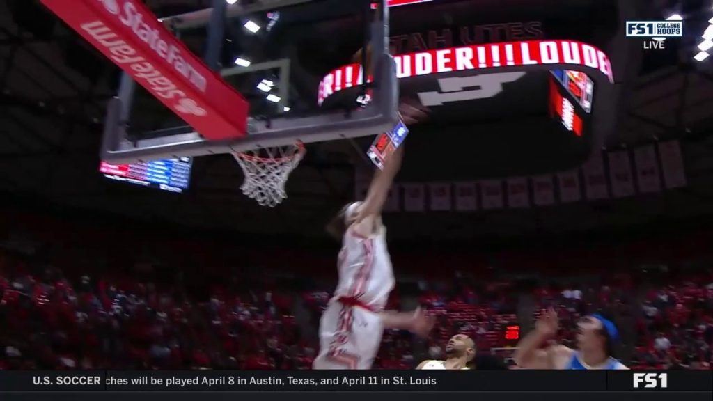 Utah's Branden Carlson records an EMPHATIC block on UCLA's Jaime Jaquez Jr.