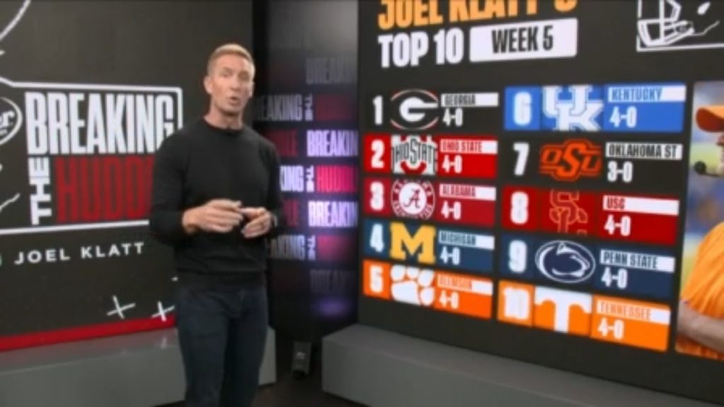 On the Week 5 edition of “Breaking the Huddle With Joel Klatt” Klatt gives an updated version of his Top 10 of the week including the Georgia Bulldogs, Ohio State Buckeyes and Alabama Crimson Tide. Also included are the Michigan Wolverines, Clemson Tigers, Kentucky Wildcats, Oklahoma State Cowboys, USC Trojans, […]