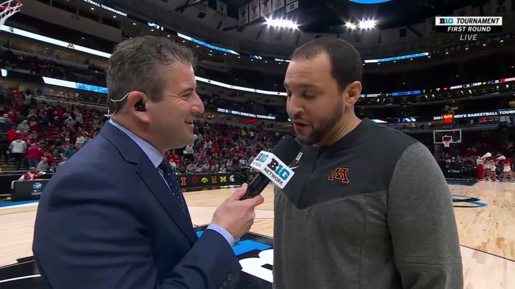 Minnesota's Head Coach Ben Johnson speaks on his team leading Nebraska at half in the Big Ten Tournament