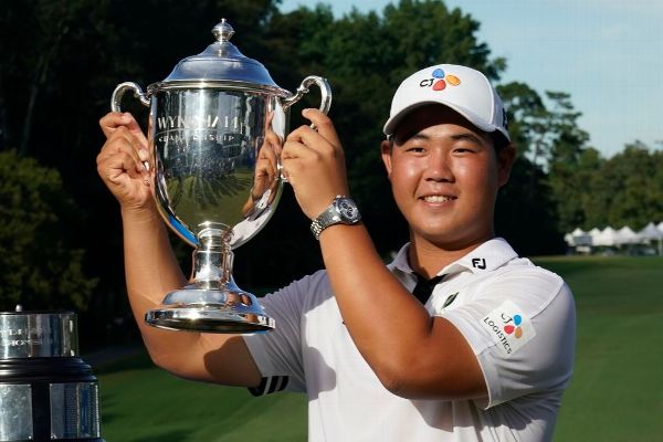 Joohyung "Tom" Kim became the second-youngest winner on the PGA Tour since World War II after shooting a 9-under 61 to win the Wyndham Championship on Sunday.