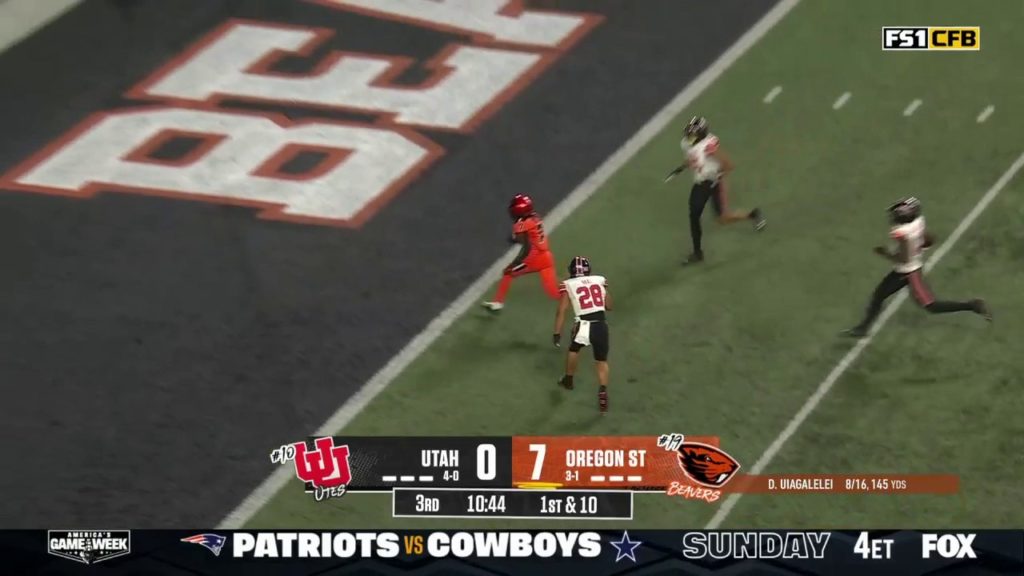 DJ Uiagalelei hits Silas Bolden down the sideline to extend the Oregon State Beavers’ lead over the Utah Utes. ESN FeedsThis post was originally published on this site