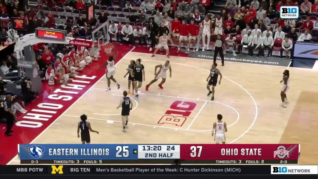 Ohio State Buckeyes’ Brice Sensabaugh hammers home a dunk to extend their lead against Eastern Illinois Panthers to 39-25. ESN FeedsThis post was originally published on this site