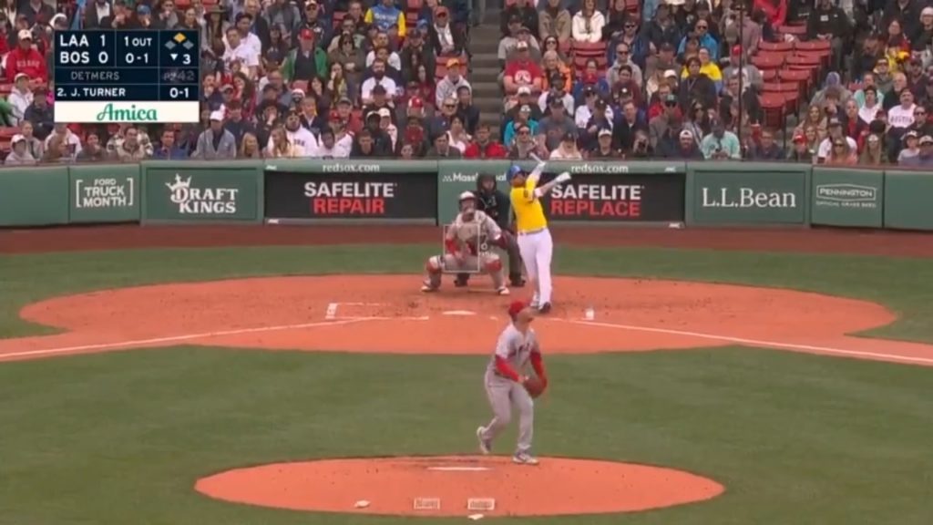 Justin Turner hits a two-run homer, his first in a Red Sox uniform, giving Boston a lead over the Angels